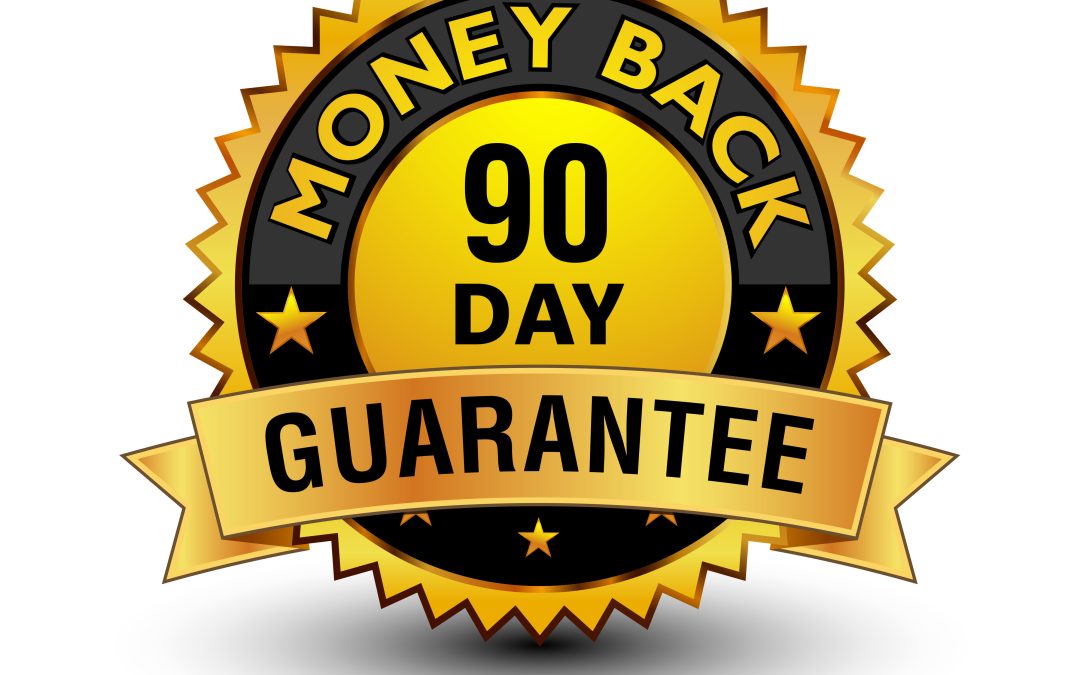 Powerful golden 90 day money back guarantee badge, stamp, seal,
