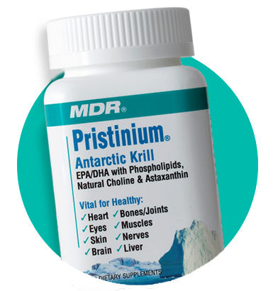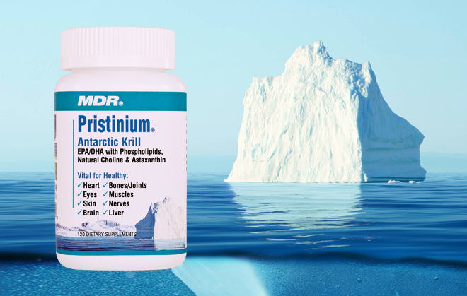 Unlike fish oils that may be contaminated with unwanted heavy metals if obtained in polluted waters, Pristinium is pure. Pristinium is derived from Krill sustainably-harvested, exclusively from the pristine waters of the Antarctic. Each batch can be traced to a specific region of the ocean, where the Krill is freshly caught and moved onboard ship for immediate processing of the oil. Then, it is encapsulated in the USA and shipped to you fresh, directly from MDR, leaders in nutrition science for over 30 years.