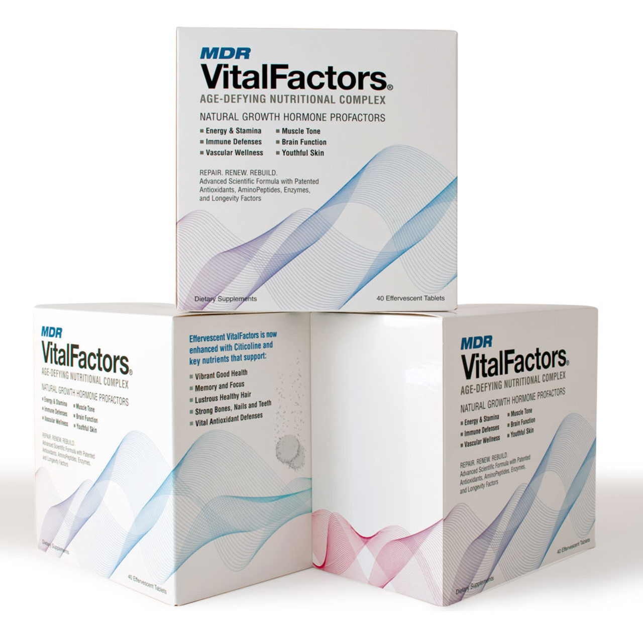 Scientific studies have shown that natural Aminopeptides called Secretagogues can coax the body into releasing its own stores of HGH. Since 1998, MDR VitalFactors used a proprietary blend of these natural Growth Hormone Releasers combined with other key anti-aging nutrients. Just one or two Effertabs in a glass of water can make a world of difference in how men and women feel.