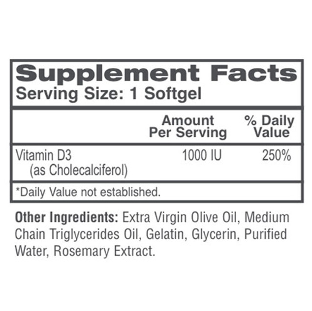 MDR Vitamin D-3 Booster provides 1000 I.U. of the most active form (Cholecalciferol) in a base of Virgin Olive Oil and Rosemary antioxidant to protect the Vitamin D-3.